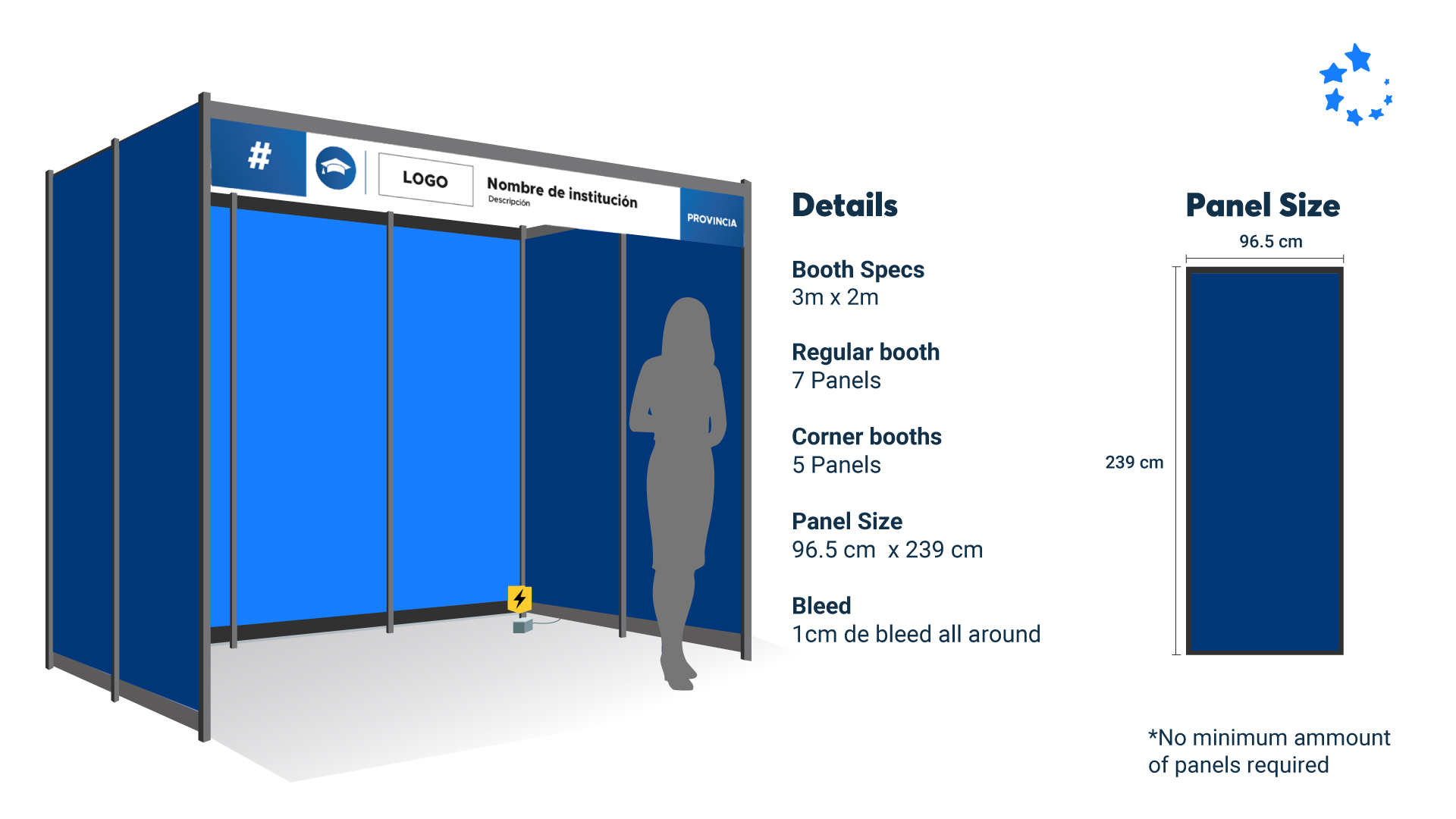 Booth Specs: 3m x 2m (Bogotá 2m x 2m, CDMX 2m x 2m)